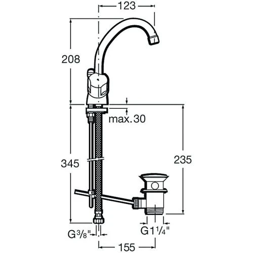 | longueur du bec d'écoulement (mm) | 208 |